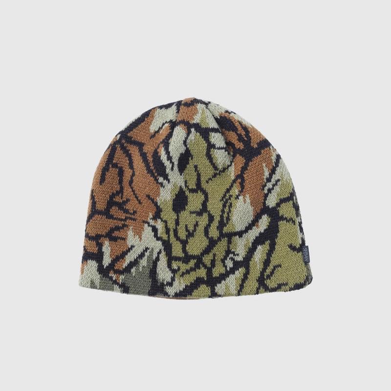 被りが少し浅めなビーニーを最近気になるツリーカモ柄で作ってみました。ソフトな被り心地と浅めのフィットは女性にもおすすめ。シンプルなコーディネートの中で1点ポイントを作ることもでき、ちょびっとだけ入ったウールのおかげで普通のアクリルビーニーよりも肌触りがよい気がします。